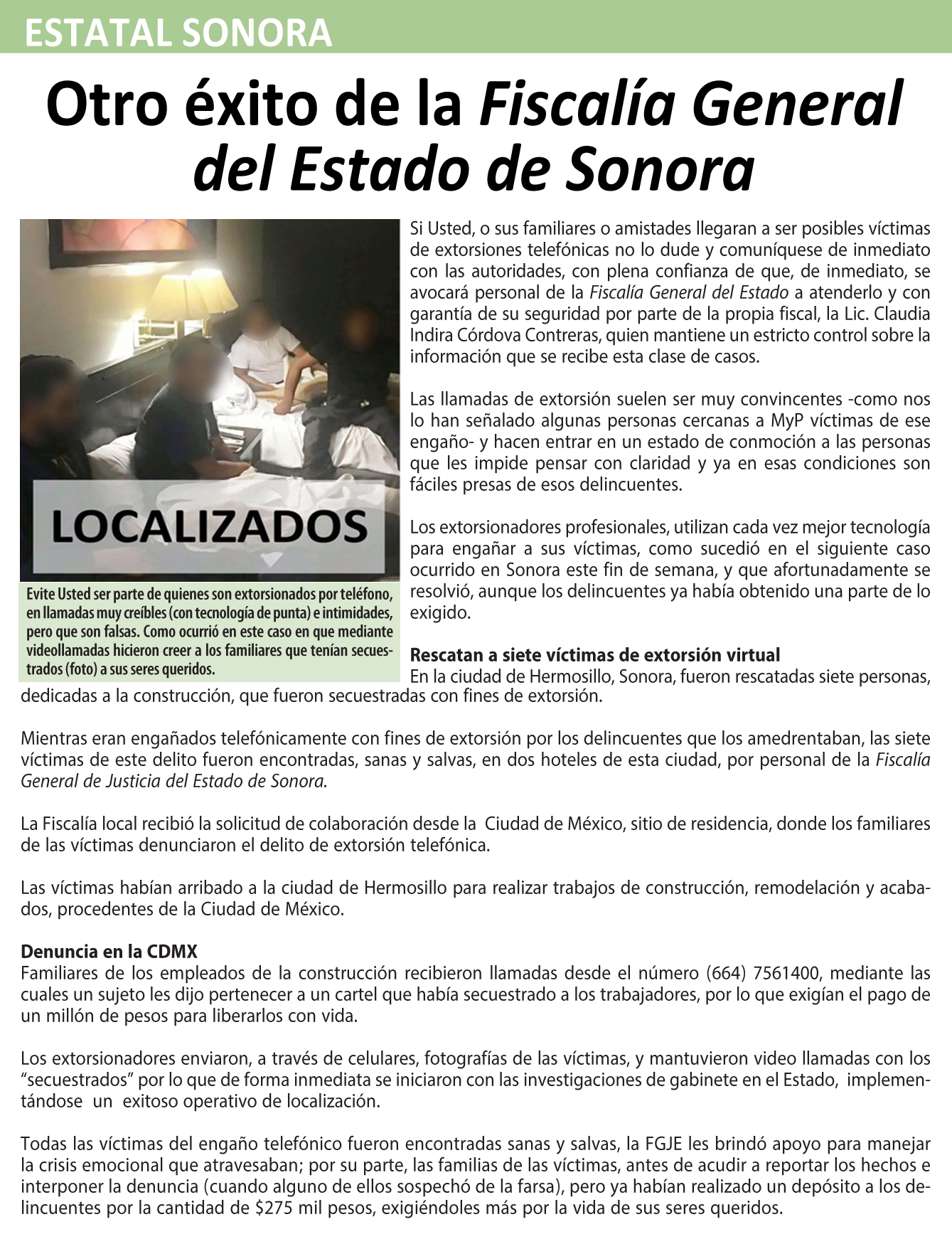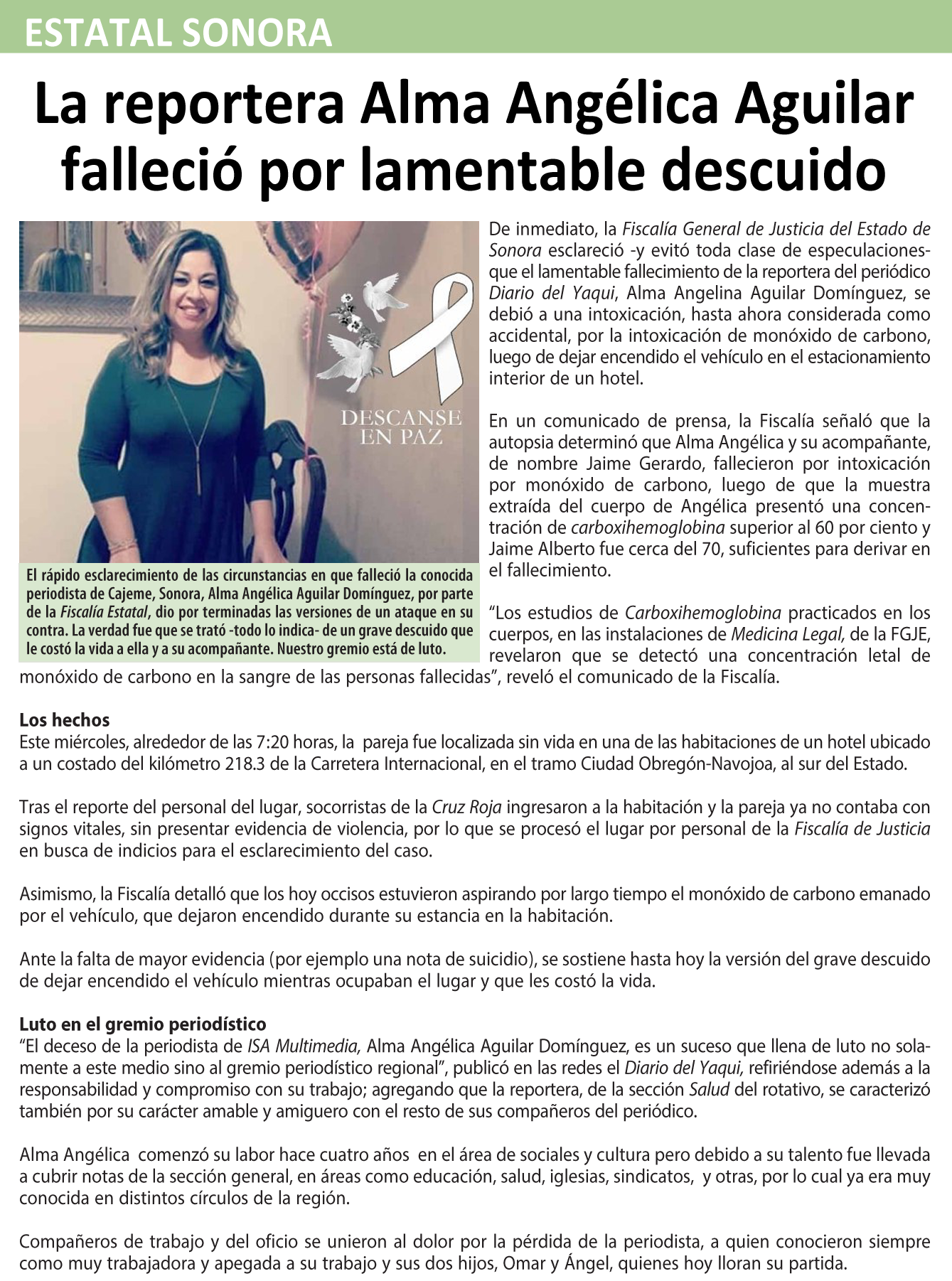 PUBLICIDAD: Tels. (662) 212 25 52 Cel. 662 1 441440 [email protected] |